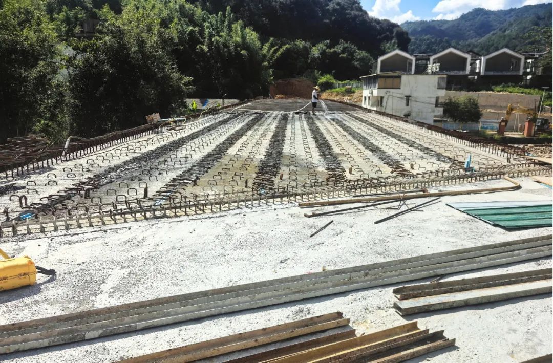 凤平桥位于江湾镇湖洋村委会旁,是镇中心通往湖洋村、胡屋村的关键节点。以前,该两村群众前往镇区仅靠一座简单的涉水桥,遇到暴雨天气,桥面容易被水淹没,群众无法通行,给生活造成极大不便。2024年4月江湾镇受灾后,武江区规划在此新建一座车行桥,项目自2024年12月开工以来,始终保持高效节奏。目前,桥面面板铺设及面板间混凝土填充已全部完成,下一步将重点推进桥面混凝土铺装、护栏安装以及引道、护坡等配套工程。